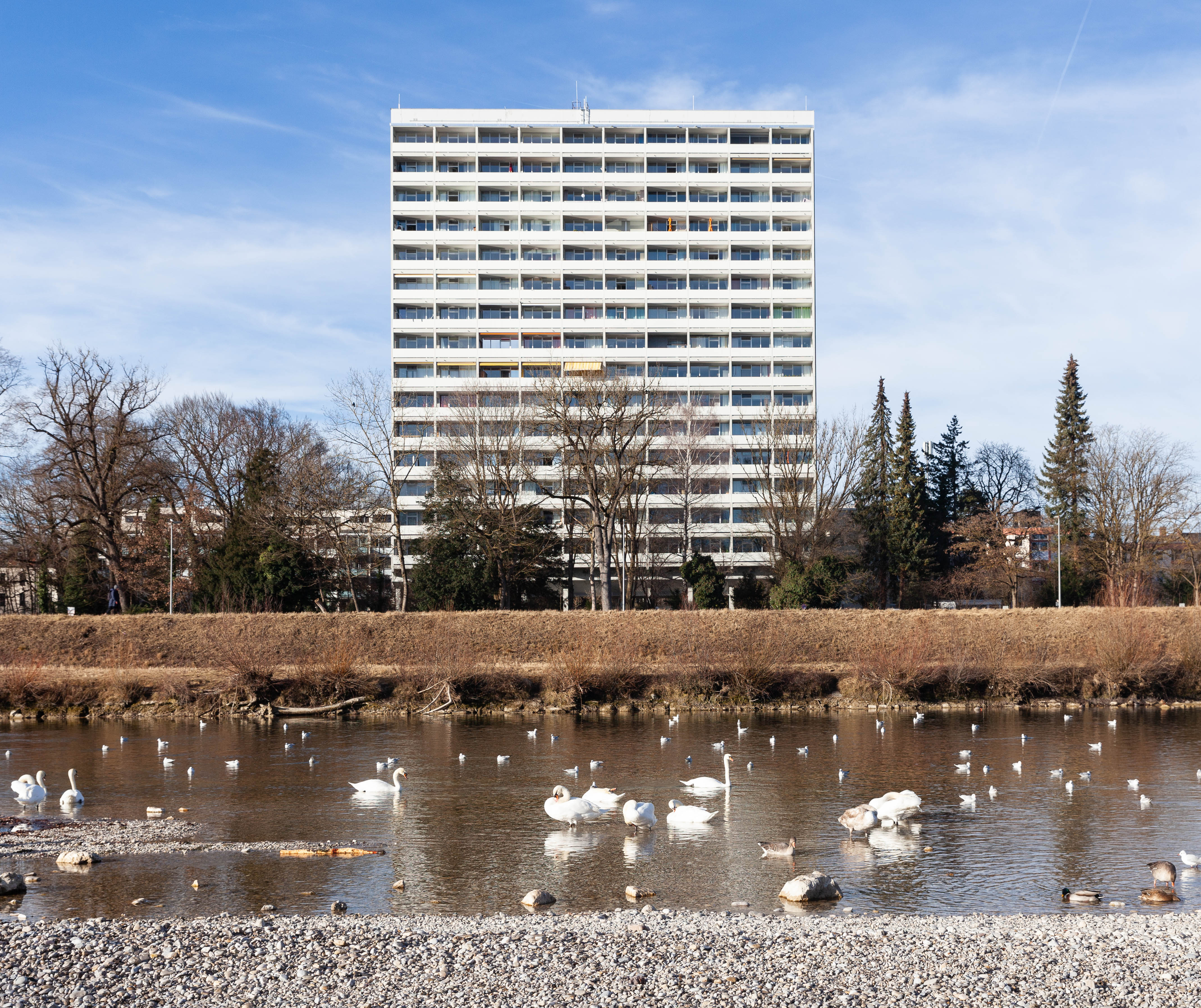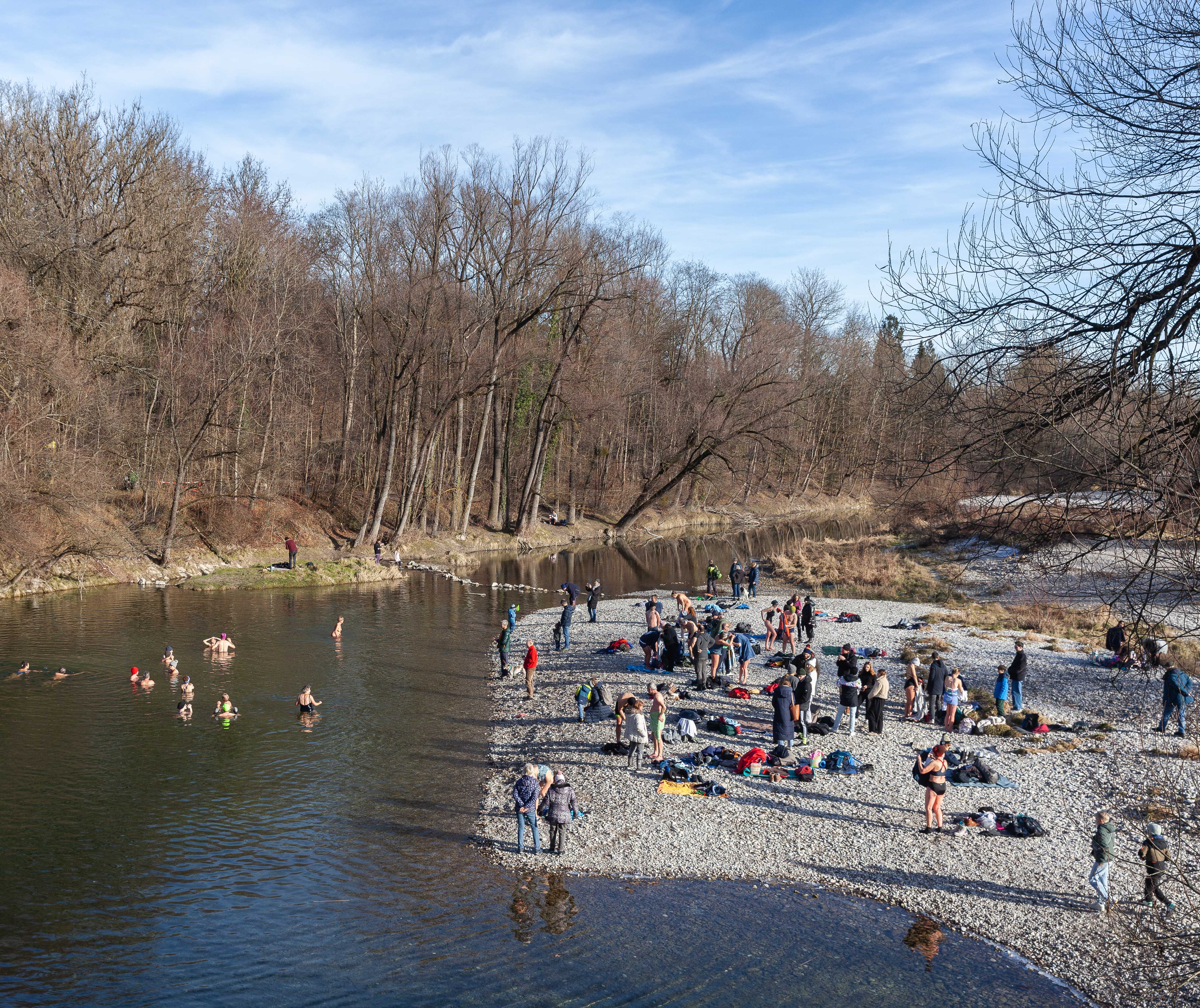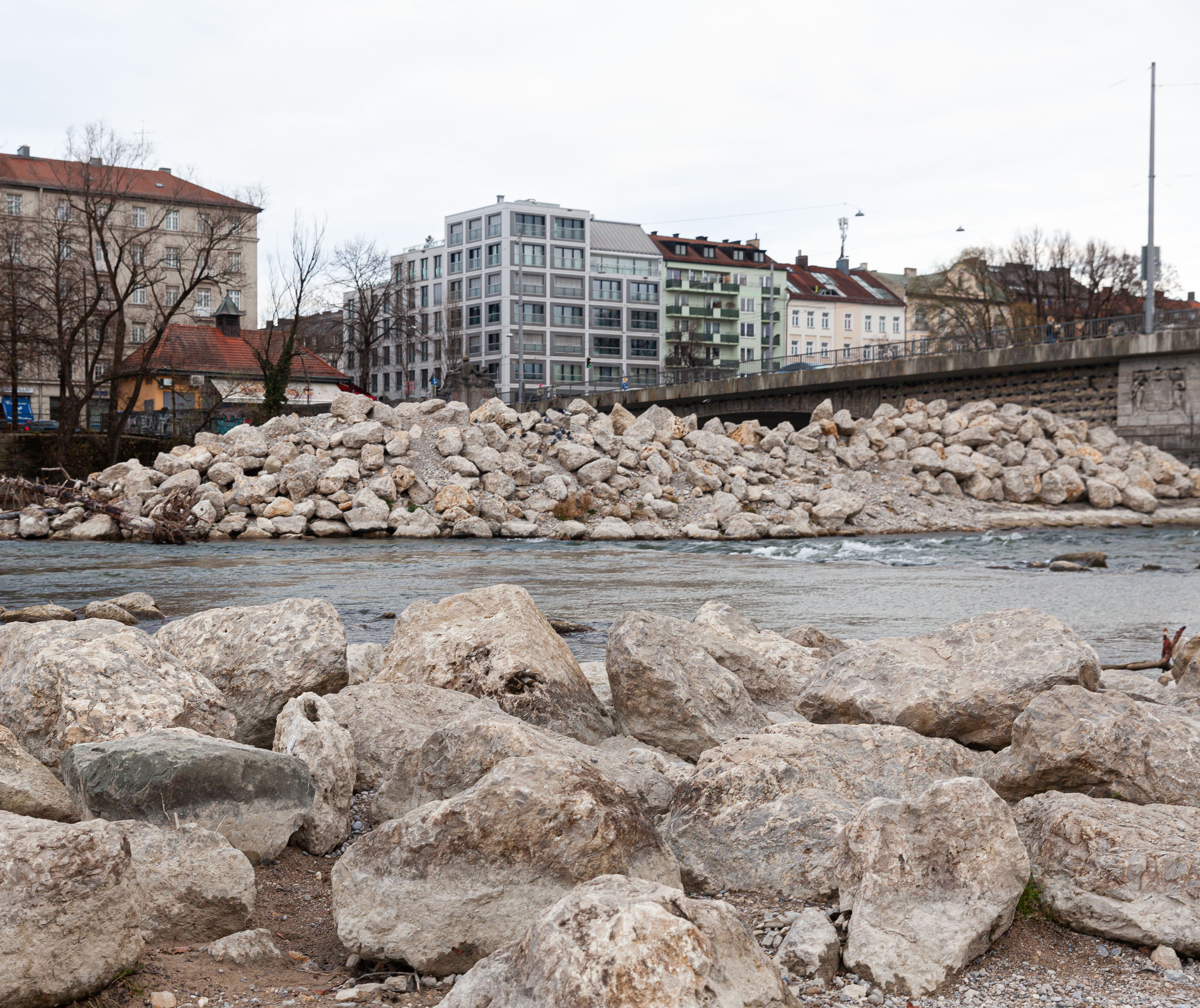 Die Arbeit „Isarsplitter“ beleuchtet die anhaltenden Veränderungen der Landschaft entlang der Isar, von der Quelle bei Scharnitz bis zur Mündung bei Deggendorf. Sie dokumentiert das Spannungsfeld zwischen natürlicher Dynamik, menschlich geformter Nutzung des Raums und der steigenden Bedeutung des Flusses für Freizeitaktivitäten.