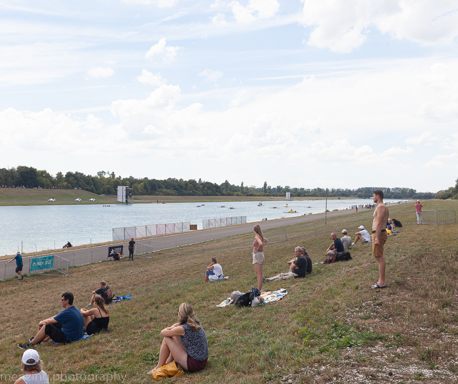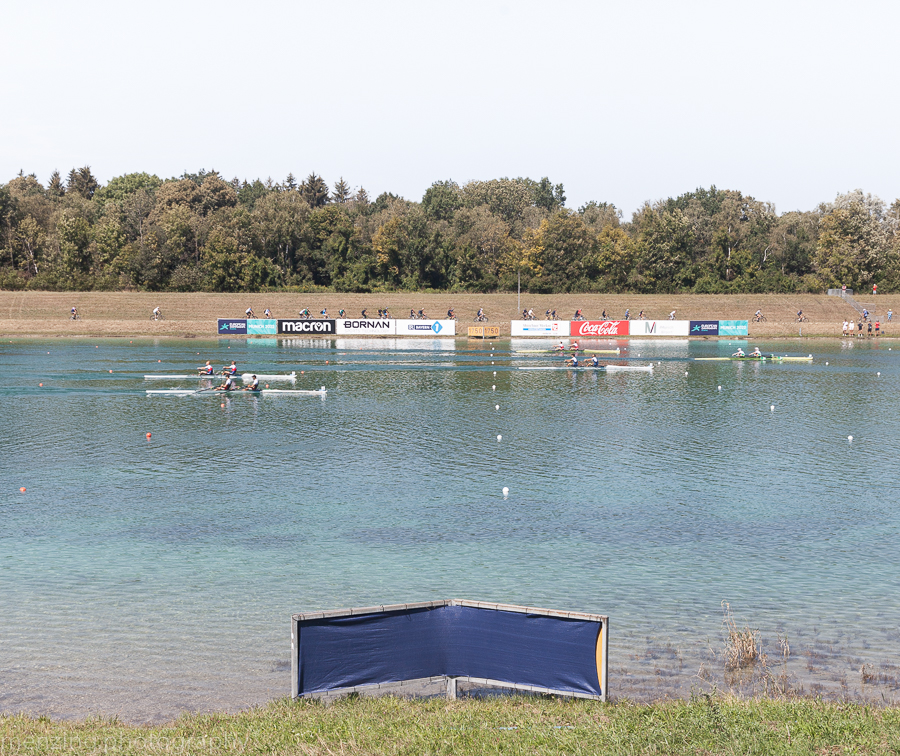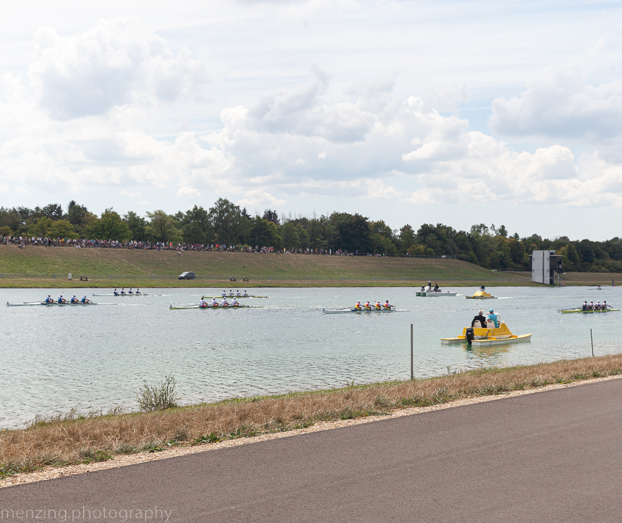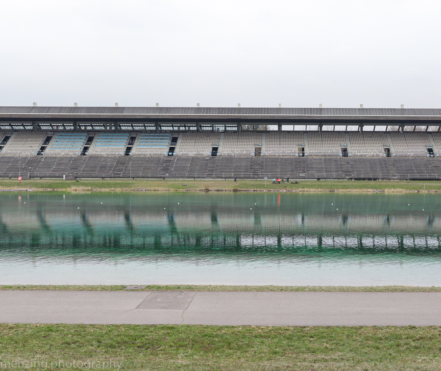 Der Eindruck der großen Weite ist immer meine erste Empfindung wenn ich auf das Gelände der Regattaanlage in Oberschleißheim bei München komme. Ihre immense Ausdehnung verschluckt die Menschen die sich in ihr bewegen, und die großen Ruderboote wirken wie kleine Käfer auf dem Wasser. Die riesige Tribune und die stoisch dreinblickenden Zeitmesstürme säumen verloren die Ränder und wirken als ob sie in einen tiefen Schlaf gefallen sind. Aus diesem konnten sie auch die Europäischen Meisterschaften im Rudern und Kanu im August 2022 nicht erwecken. Nach dem Trubel dieser heißen Wettkampftage liegt wieder Ruhe über der grandiosen Anlage, die weiter ihren olympischen Traum träumt. Und die Sportler tragen weiterhin ihren stillen Kampf gegen Raum und Zeit aus.