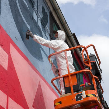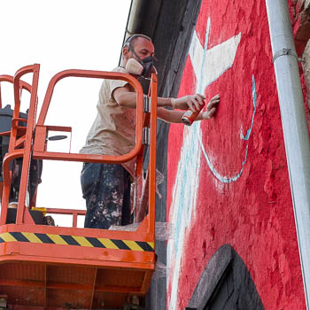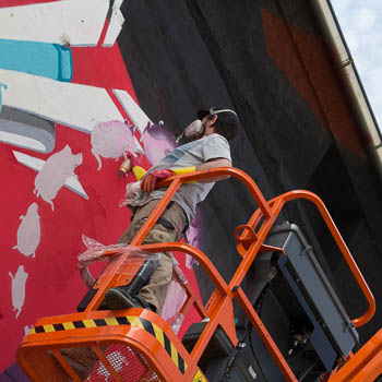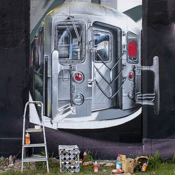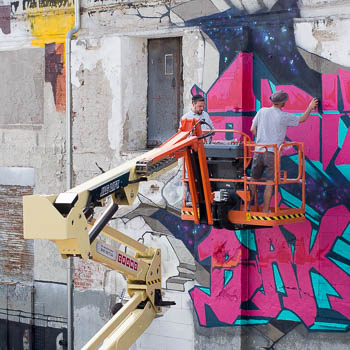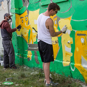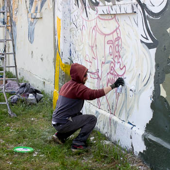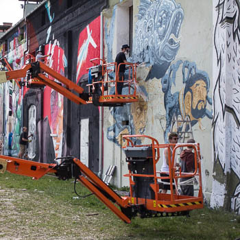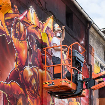 Urban Art Festival im ehemaligen Viehhof. Die Deadline des Festivals definiert zum einen den zeitlichen und räumlichen Abschnitt, in dem das XXL-Kunstwerk entsteht, und zum anderen das Ende der Gestaltungsphase und den Start des Abschluss-Events. München, 2015