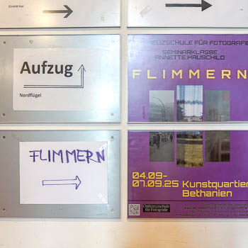 Präsentation der Arbeit Isarsplitter in der Ausstellung Flimmern der Seminarklasse von Annette Hauschild an der Ostkreuzschule im Kunsquartier Bethanien, 04.-07.09.2025. Berlin, 2025
