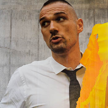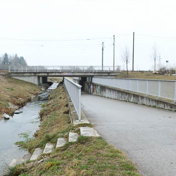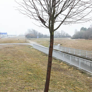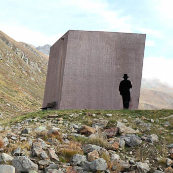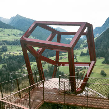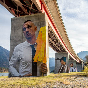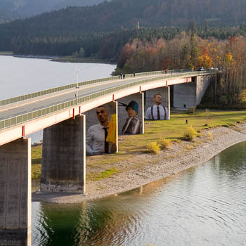 Fotoinstallation von Sascha Jahn an der Brücke über den Sylvensteinspeicher bei Fall. Lenggries, 2015