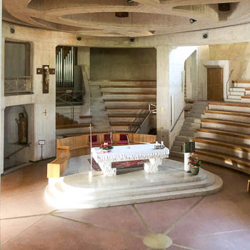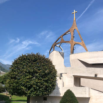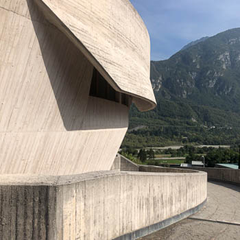 Die Kirche Santa Maria Immacolata, besser bekannt als Denkmalskirche von Longarone, wurde zu Ehren der Opfer der Erdrutsch-Katastrophe von Longarone vom 09.10.1963 nach einem Entwurf des italienischen Architekten Giovanni Michelucci errichtet. Das Stahlbetonbauwerk hat eine elliptische Form und bildet zwei übereinanderliegende Amphitheater. Das untere ist überdacht und umfasst den Altar und den für die Gläubigen reservierten Bereich, das obere liegt unter freiem Himmel und wird für Sonderveranstaltungen genutzt. Longarone, 2023