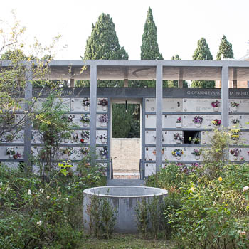 Die Corti dei quattro Evangelisti sind der erste von David Chipperfield gestaltete Gebäudeblock im Rahmen der Erweiterung der Friedhofsinsel San Michele. Venedig 2014